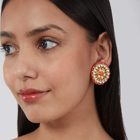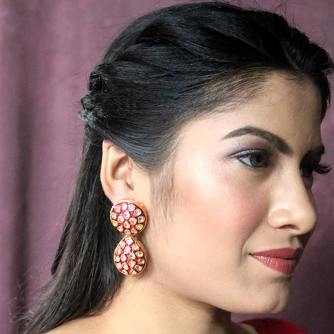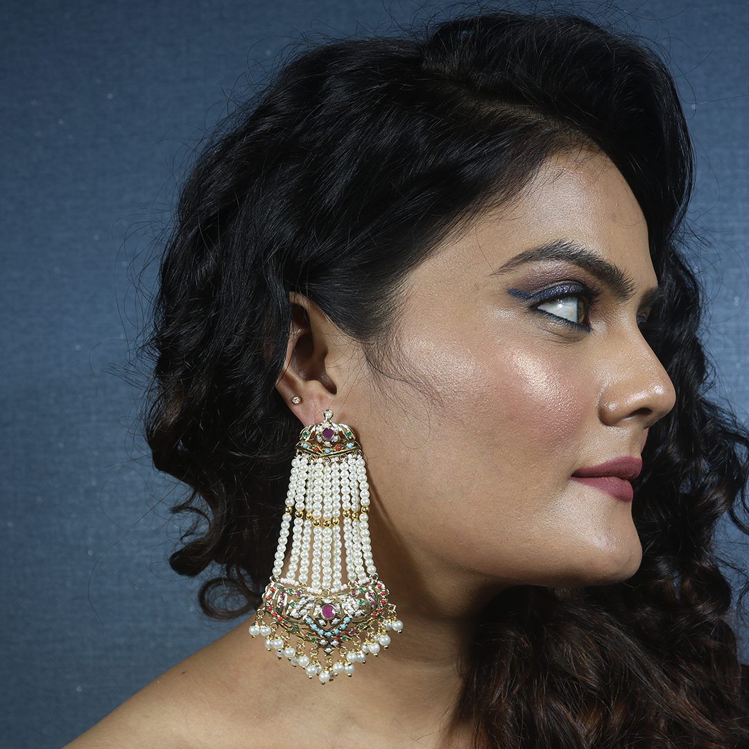 - Kundan jadau earrings with bridal charm with semi-precious motis