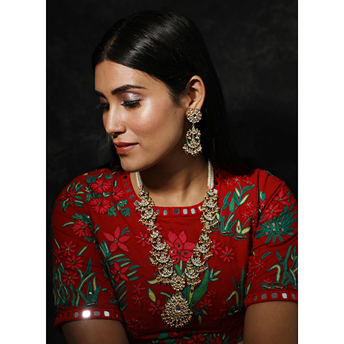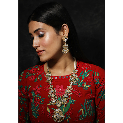 - Gold foiled pearl choker and red ruby stone patchi piece