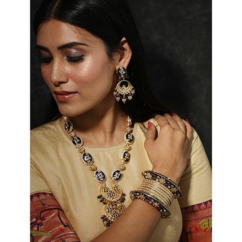 - Long meenakari necklace and semi precious stone with gold plated chand