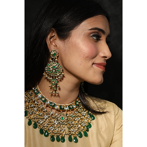 - Kundan jadau necklace with bridal charmwith semi precious geen drops