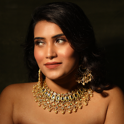- Jadtar top with green meena polki jadtar chandbali with jadtar earrings