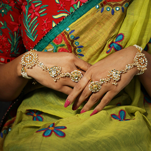 - Pearls line with white square jadtar hath-phool.