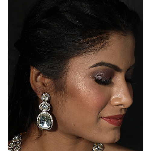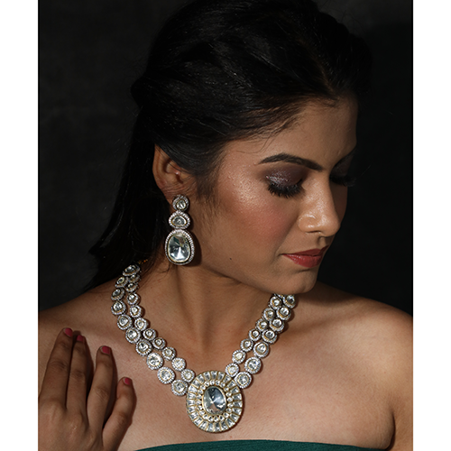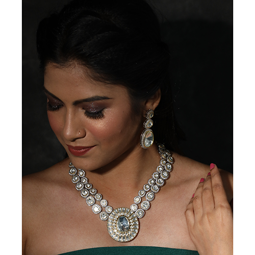 - Turquoise stone jadtar top with triangle shape jadtar with kundan pieces earrings