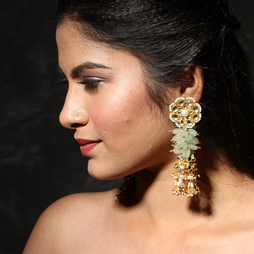 - Pink stone jadtar top with turquoise meenakari jhumka