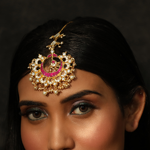 - Both side pearls line with red stone chand jadtar matha-patti