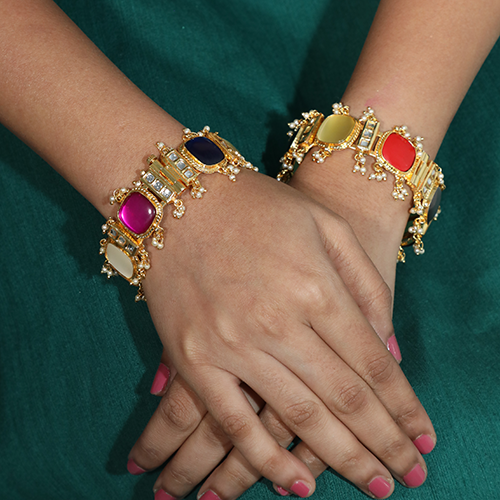 - Moti ganthan with jadtar ring and kundan hath-phool