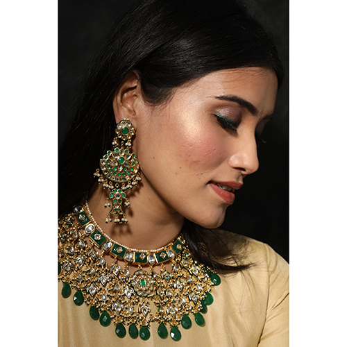 - Kundan jadau earrings with bridal charm with semi-precious motis