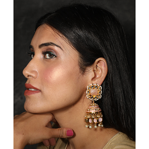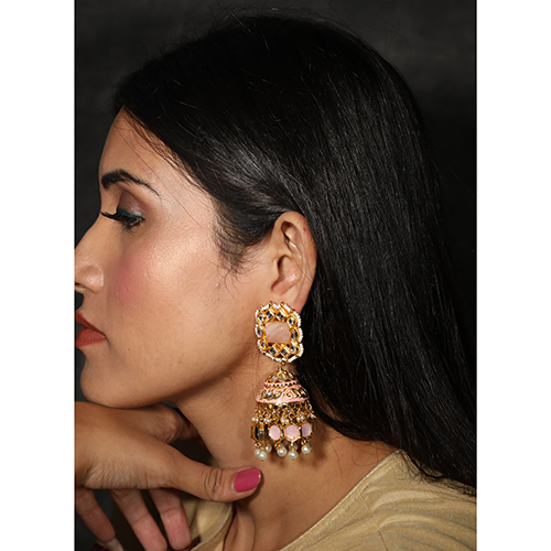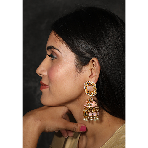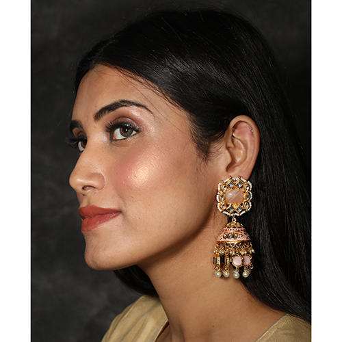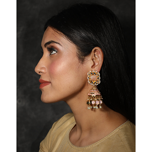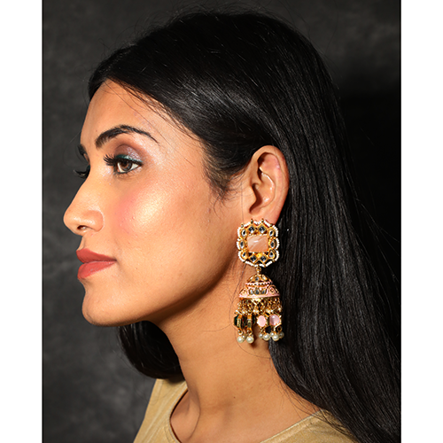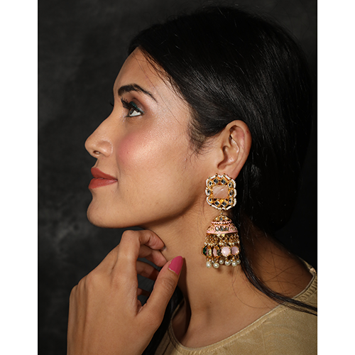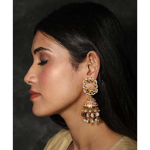- Kundan jadau earrings with bridal charm with semi-precious motis