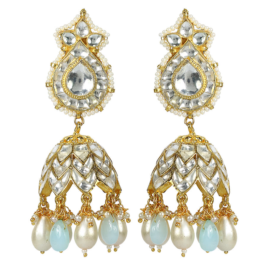 - Semi-precious turquoise carved stone gold plated kundan and semi-precious pearl drops