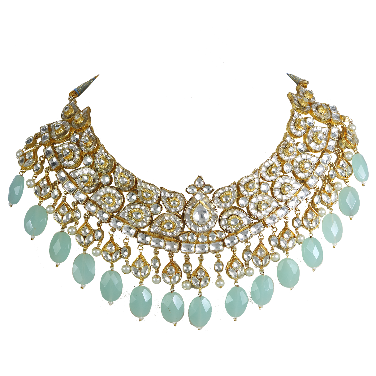- Both side pearls gucha line with big triangle shape blue stone jadtar choker