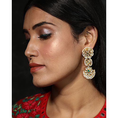 - Kundan jadau earrings with bridal charm with semi-precious motis